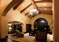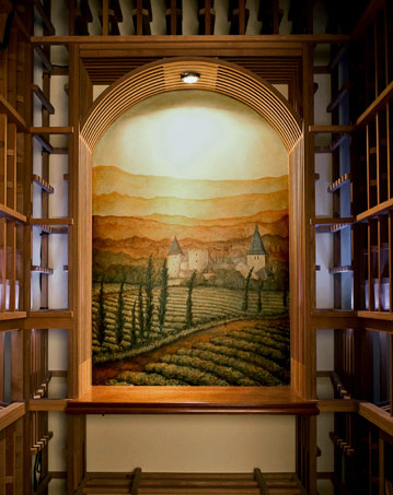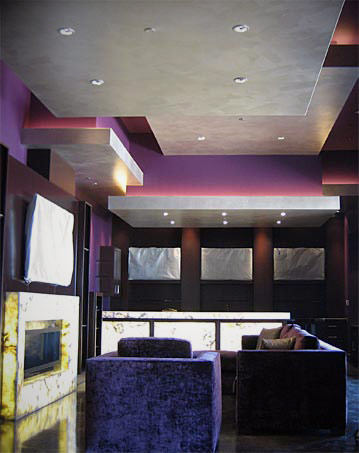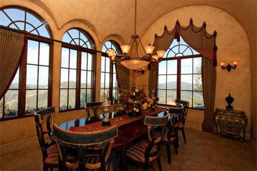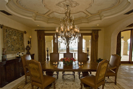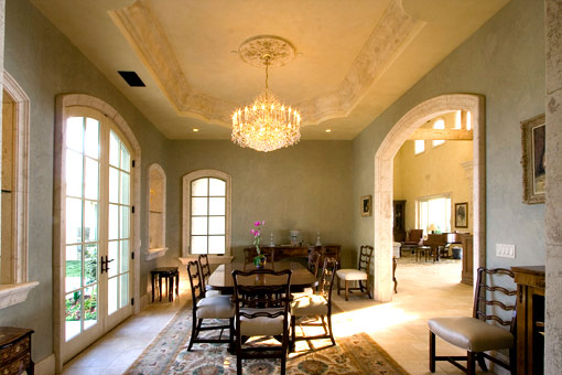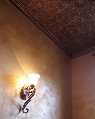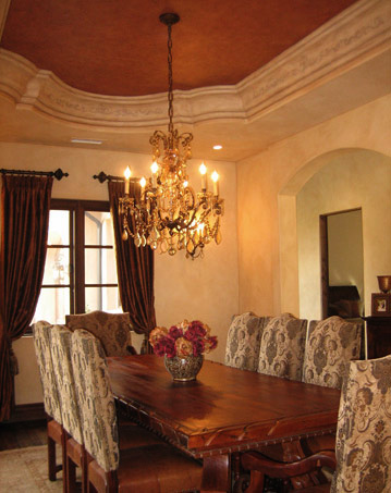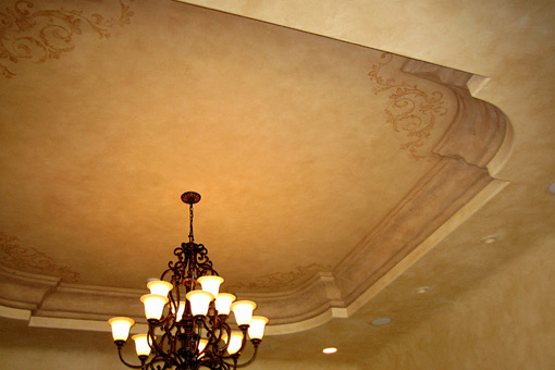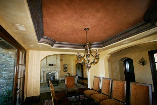 Tuscan glaze interior faux finish with bronze and burgandy dining room ceiling.