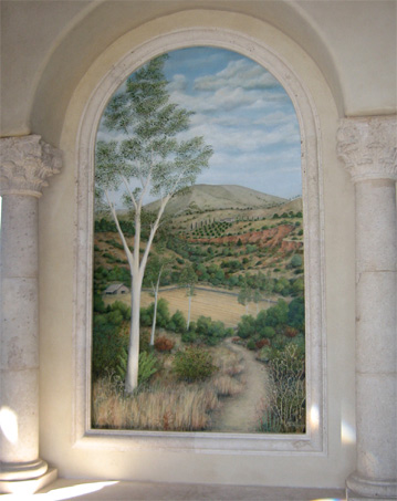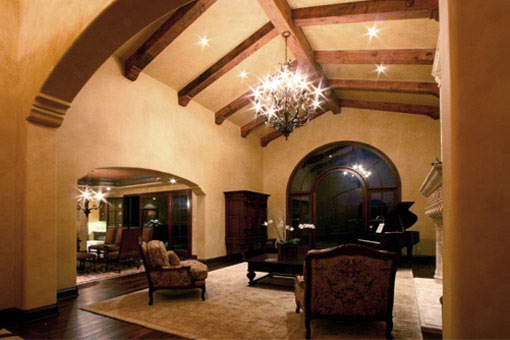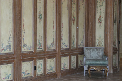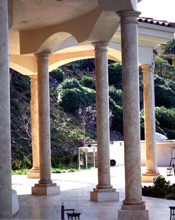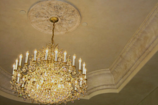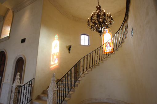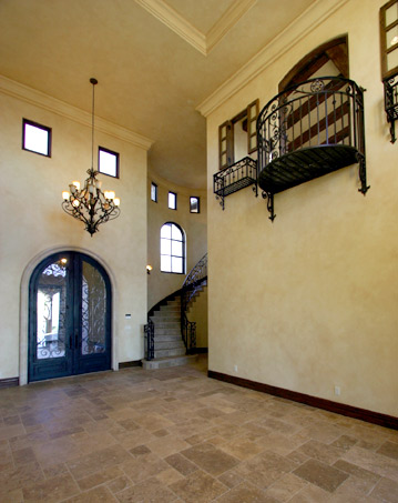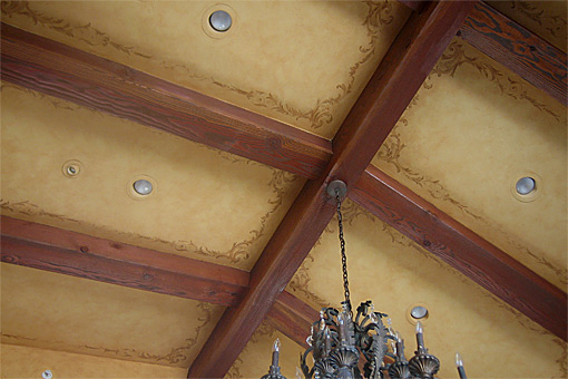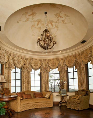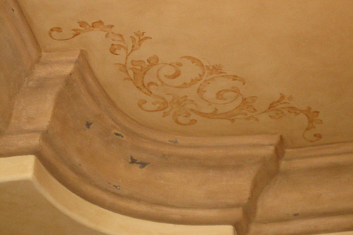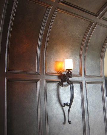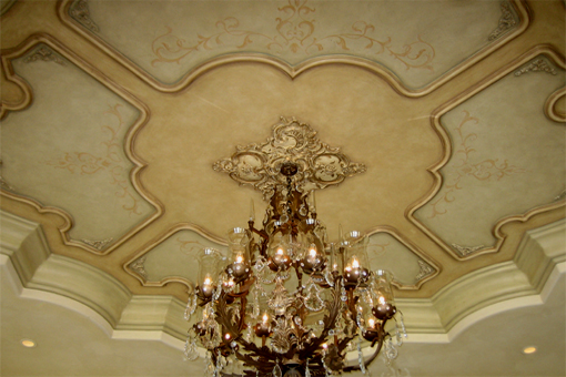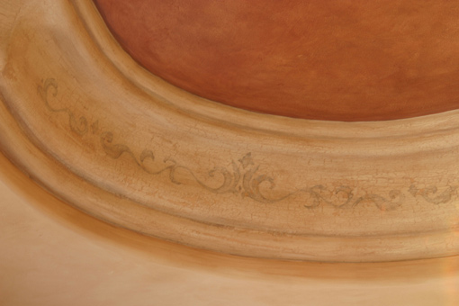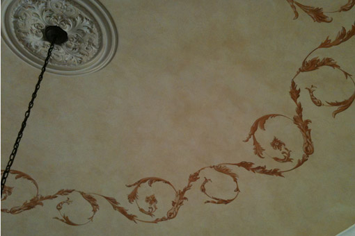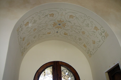 Entry dome with hand painted acanthus leaf scroll and faux finish.