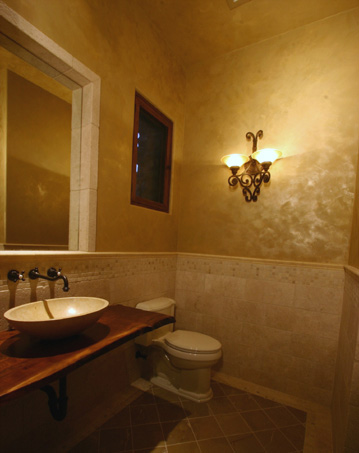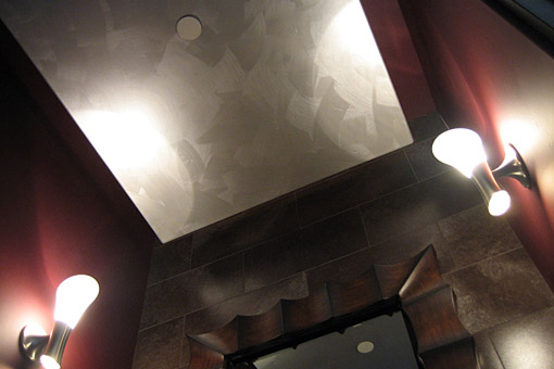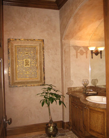 Modern Masters Shimmerstone metallic plaster in powder bathroom.