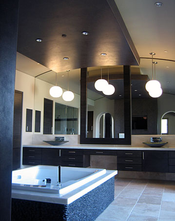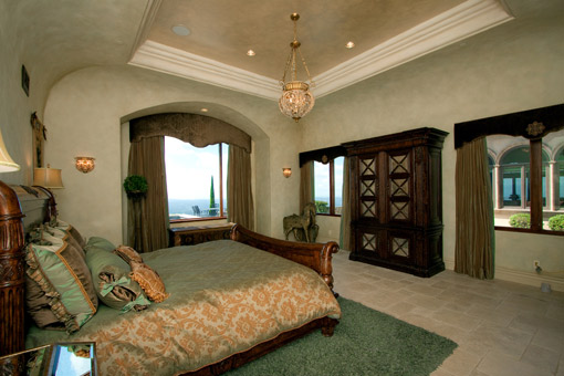 Soft mediterranean green/blue faux finish with oyster pearl ceiling.